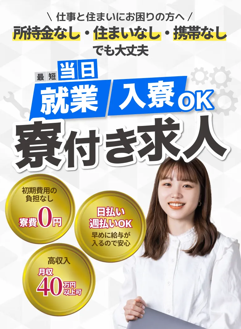 最短でご相談当日中のご案内も可能です。状況により当日から入寮・お仕事スタートができるケースもございます。